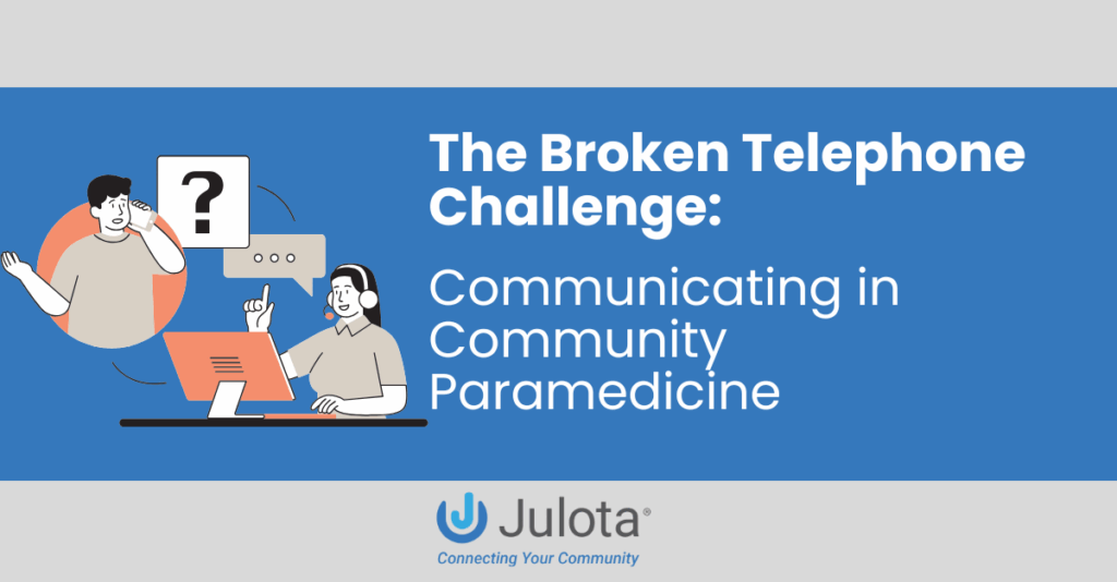 The broken telephone effect presents a serious challenge to the success of community paramedicine. Community paramedicine teams may struggle to provide effective care without accurate and reliable communication, leading to misdiagnoses, unnecessary hospital visits, and patient dissatisfaction. However, by leveraging technology, like Julota, standardizing communication protocols, and fostering stronger coordination among healthcare providers, we can mitigate the risks of miscommunication.