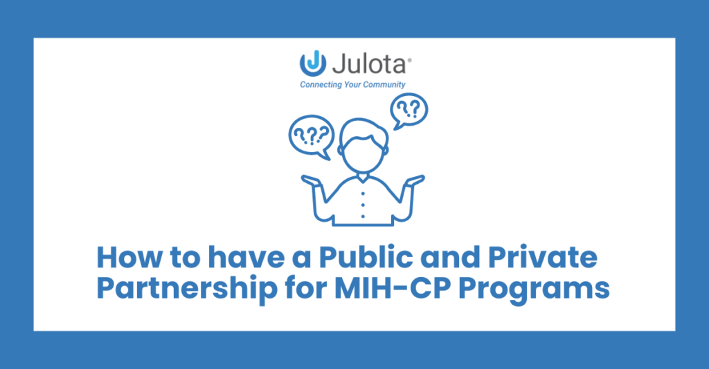 To have a public and private partnership for mobile integrated healthcare-community paramedic (MIH-CP) programs, you must begin a conversation between public health organizations and private health providers. Public-private partnerships seek to align the efficiency of the private market with the goals of the public.