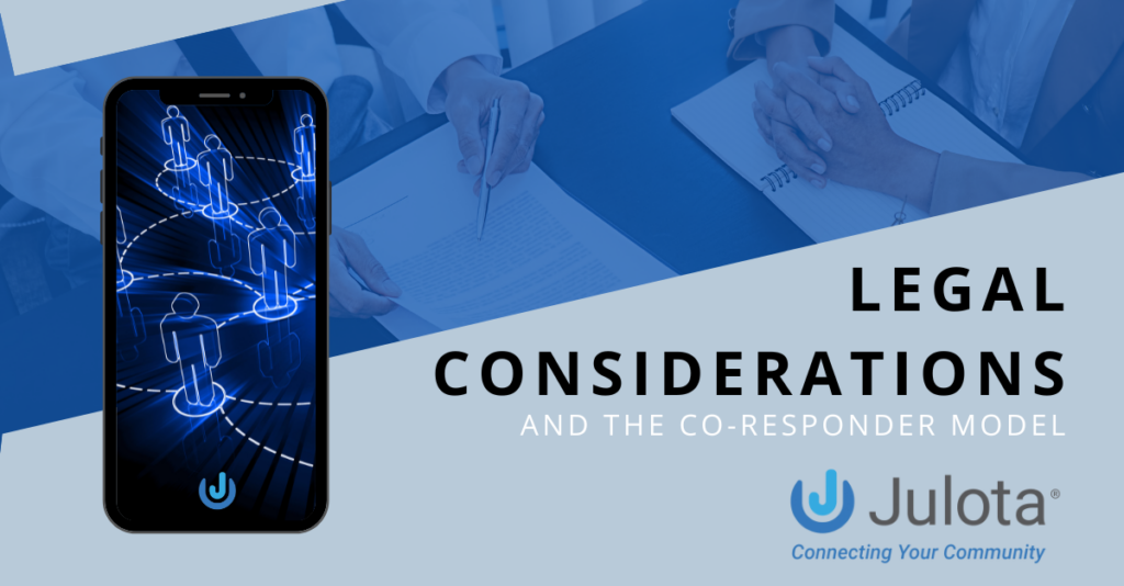Specifics of how this model operates vary widely between jurisdictions. Most have structured the program so that an officer and paired mental health worker will ride together for their shift. Legal considerations on the co-responder model vary, some jurisdictions use them as “first on scene,” while others use them as an additional resource after initial contact. Some jurisdictions have used these teams city or county-wide, while others focus on high-call volume areas.